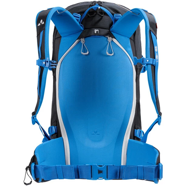 Other practical details include a separate compartment for avalanche shovel and probe and a padded compartment for ski goggles or sunglasses. Skis can be attached quickly and easily diagonally to the backpack, and a snowboard can also be attached to the Back Bowl 30. In addition, there’s an attachment point for an ice pick or poles and small practical features such as a zip compartment on the hip belt and a place for your water bottle. This product is made with eco-friendly, water repellent Eco Finish and is manufactured without the use of fluorocarbons (PFC). The VAUDE Green Shape label stands for environmentally-friendly, functional products made from sustainable materials.